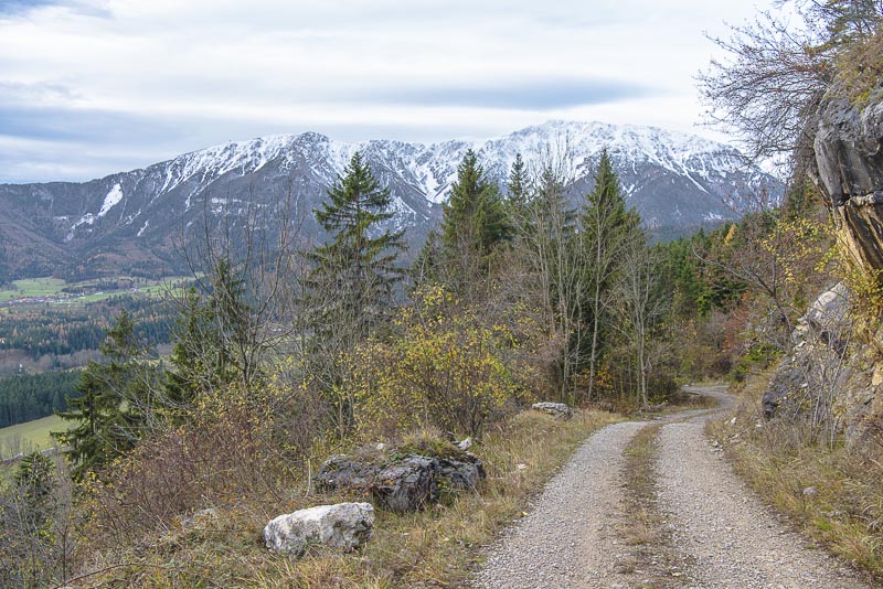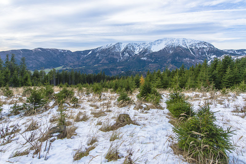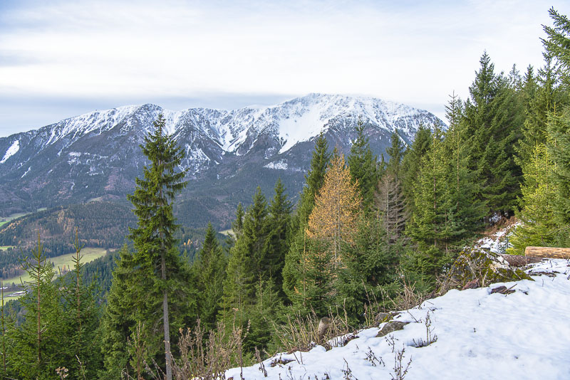 Weiter oben, am Kamm, gibt es auch den Ausblick zur Hohen Wand ...