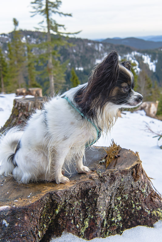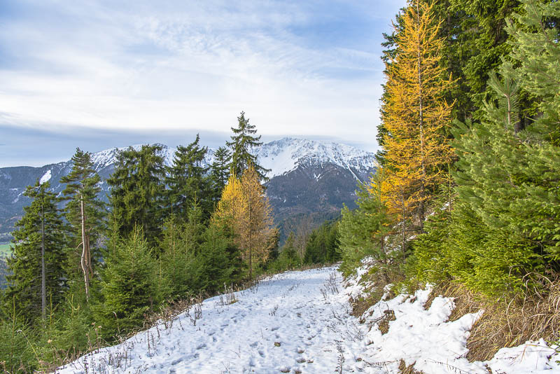 Nach einigen Tagen Schlechtwetter (mit Neuschnee am Schneeberg) ist wieder Schönwetter angesagt. Mit Hans-Jürgen Pietsch (und Lucy) gehe ich von Puchberg/Unternberg die Forststraßen hinauf zum Grössenberg.