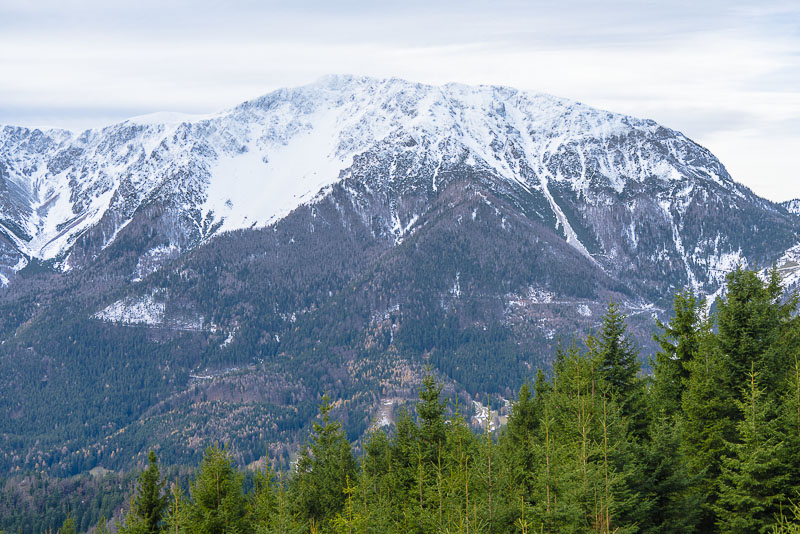 Statt des sonnigen Tages erwarten uns doch einige hohe Wolken, die aber die Sicht zum Schneeberg nicht wirklich trüben.