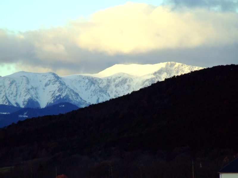 I start at 8 a.m. Cloud shadows over the plains, but Schneeberg is highlighted by first rays of morning sun.