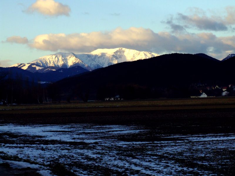 Shortly before Weikersdorf. The light on Schneeberg is increasing.