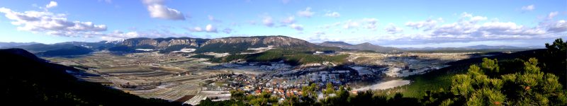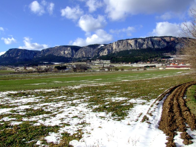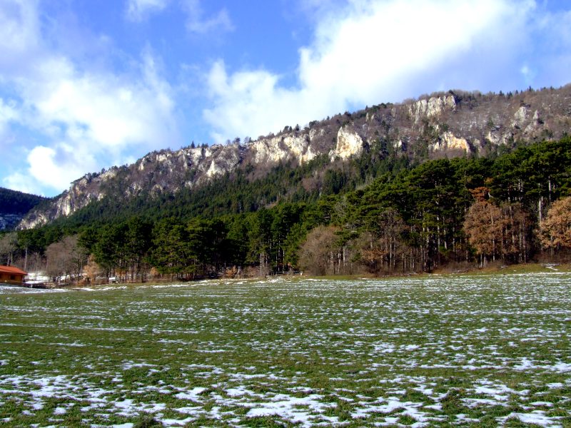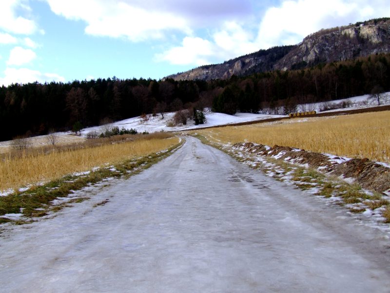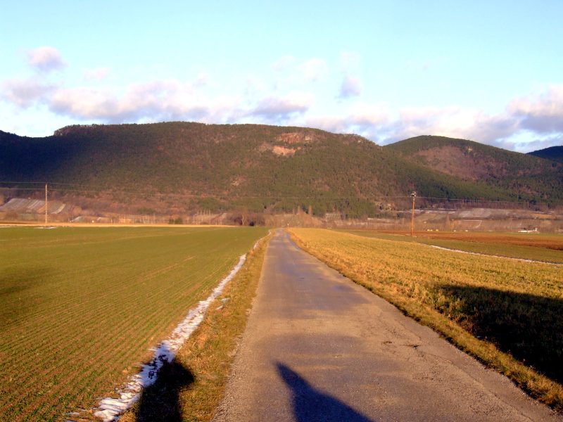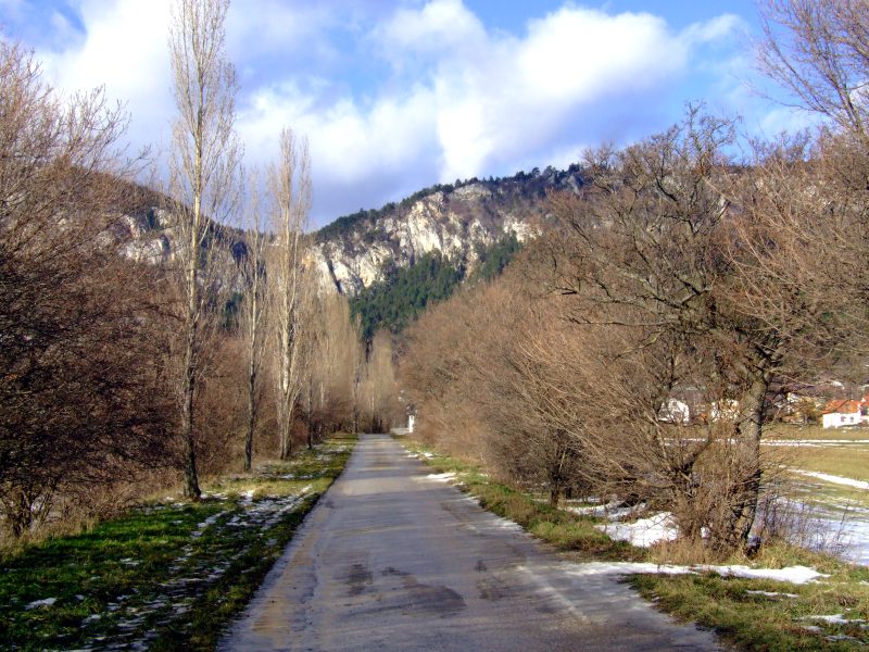 View back to Hohe Wand. In the valley up there the road to the plateau is ending.
