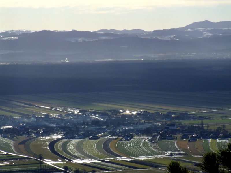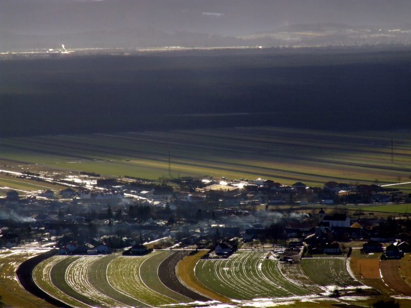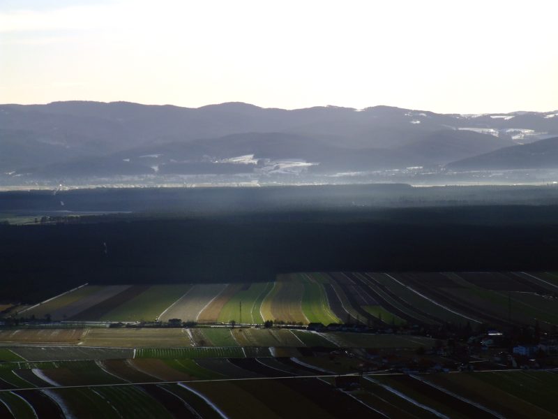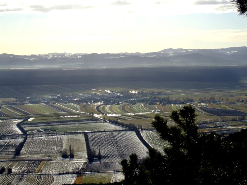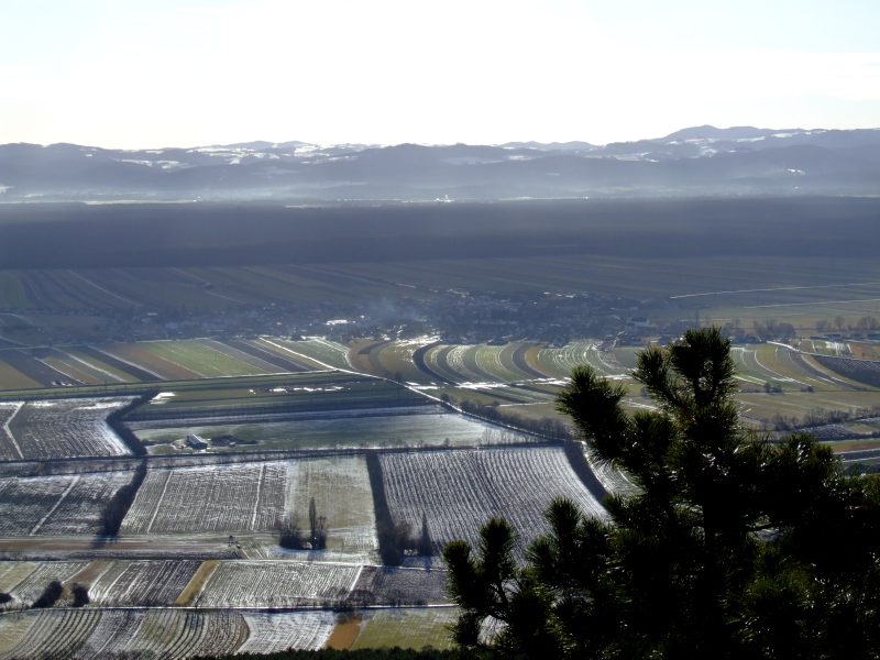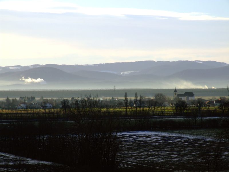 View over southern Vienna´s plain to Bucklige Welt. Weikersdorf´s church to the right.