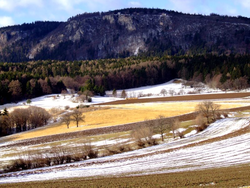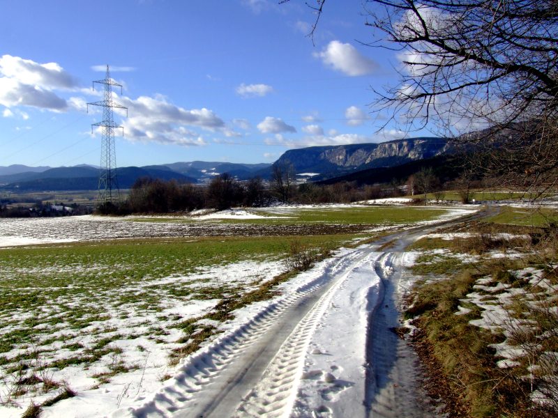 Finally the mist has lifted and it is clear. So I start for a long morning walk, first to Weikersdorf, then over Groessenberg, down to the road between Muthmannsdorf and Dreistetten, to the foothills of Hohe Wand, along Hohe Wand to Felbring and Stollhof, and via Ruin Emmerberg and Prosset gorge back (about 4 1/2 hours)