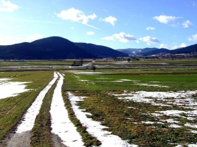 Now walking over fields and grassland to the foothills of Hohe Wand.