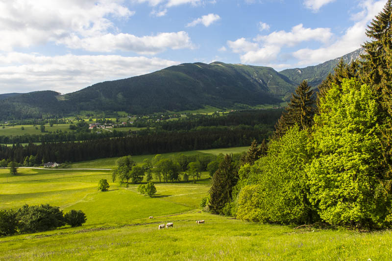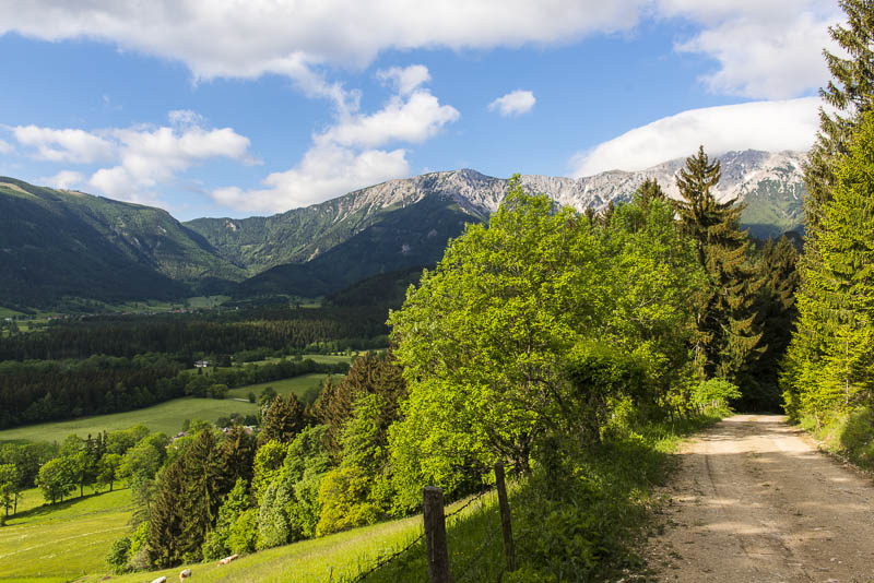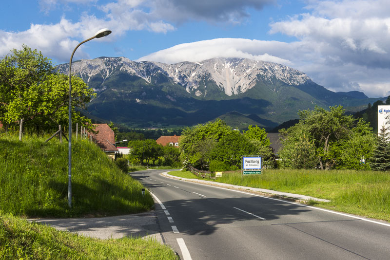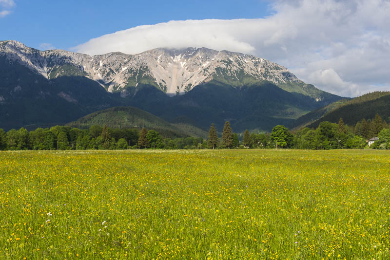 At the outskirts of Puchberg - Schneeberg with a hat of cloud today.