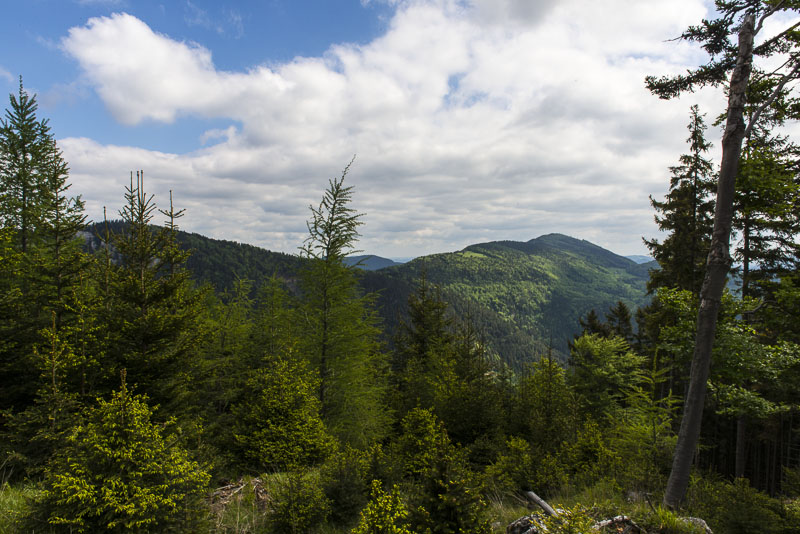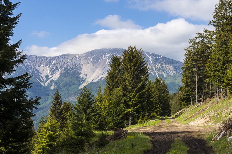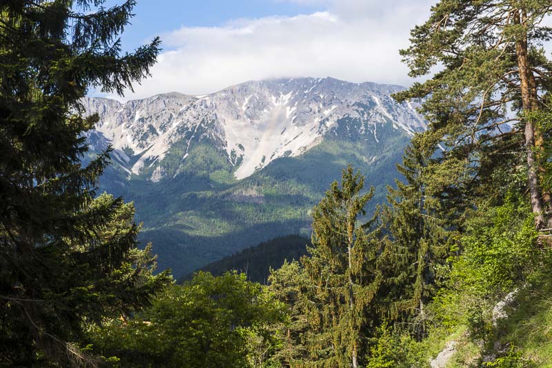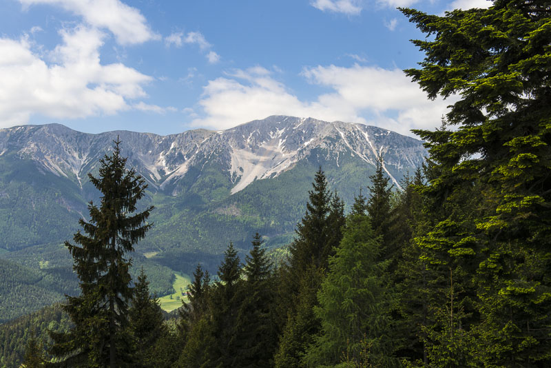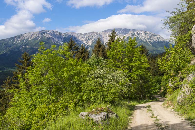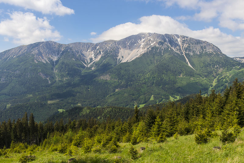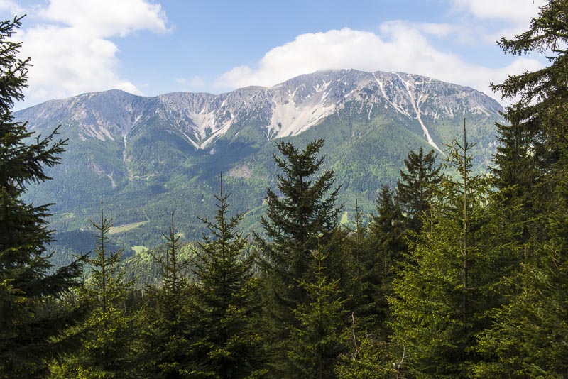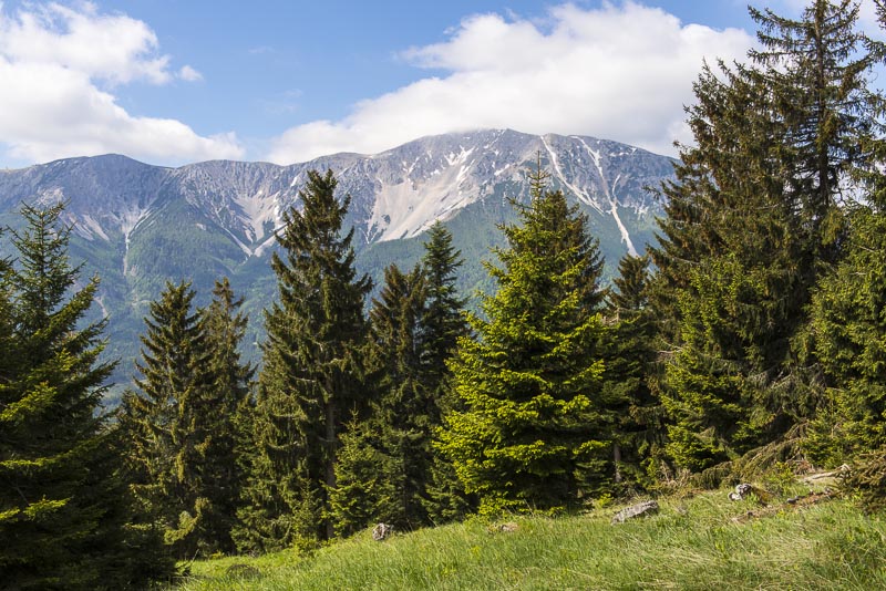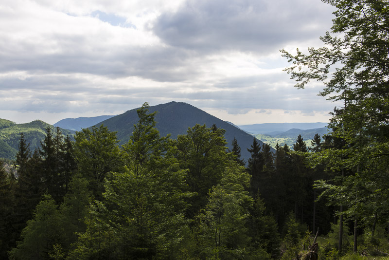 A small clearing with a view to Haltberg, Hohe Wand to its left behind.
