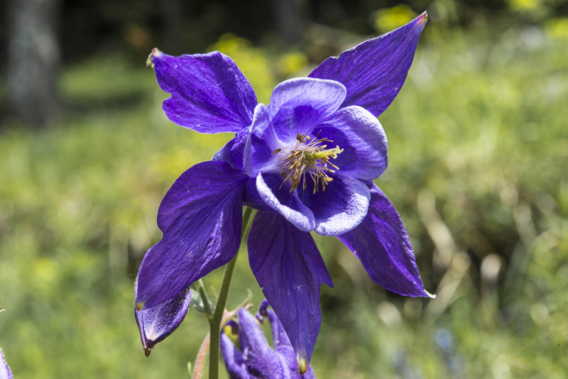 To be sure that can I find the grassland in the future, I walk back the road, a bit boring and flat in the beginning, to get back exactly where I have started. Columbines (Aquilegia vulgaris) along the road.