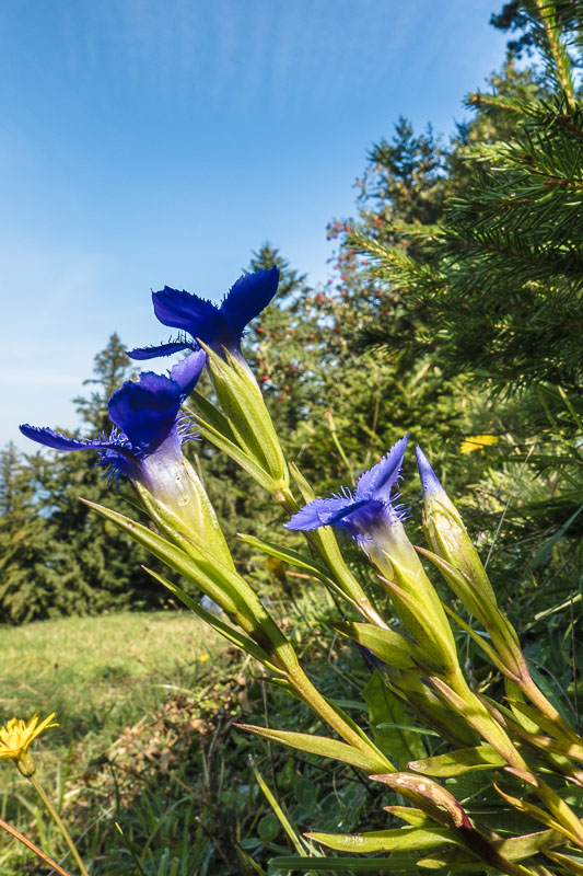 Fringed gentian (Gentianopsis ciliata) along the path ...