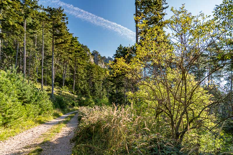 I drive to Grünbach and into the hamlet of Lupard. From there, I first explore the southern slopes of Hohe Wand.