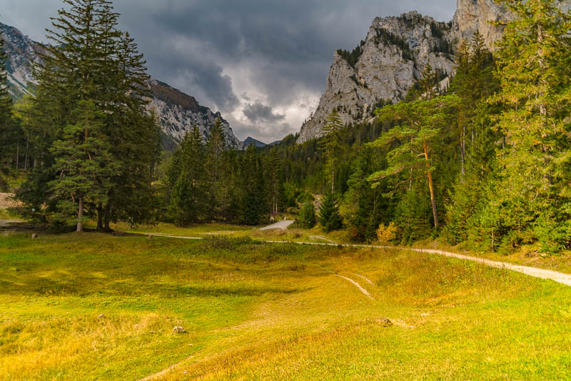 A last view to the Grüner See. According to the Homepage of the lake, the water level now is 2 m, in spring, during snow melting on the mountains, it may go up to 11 m or more. Lower parts of the surrounding woods are under water then.