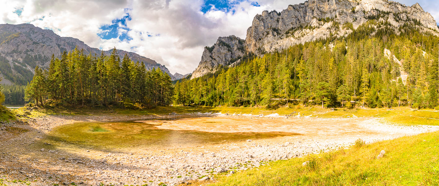 Panoramabild des hinteren, derzeit abgetrennten Anteils des Grünen Sees.