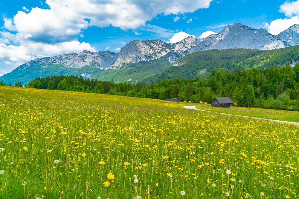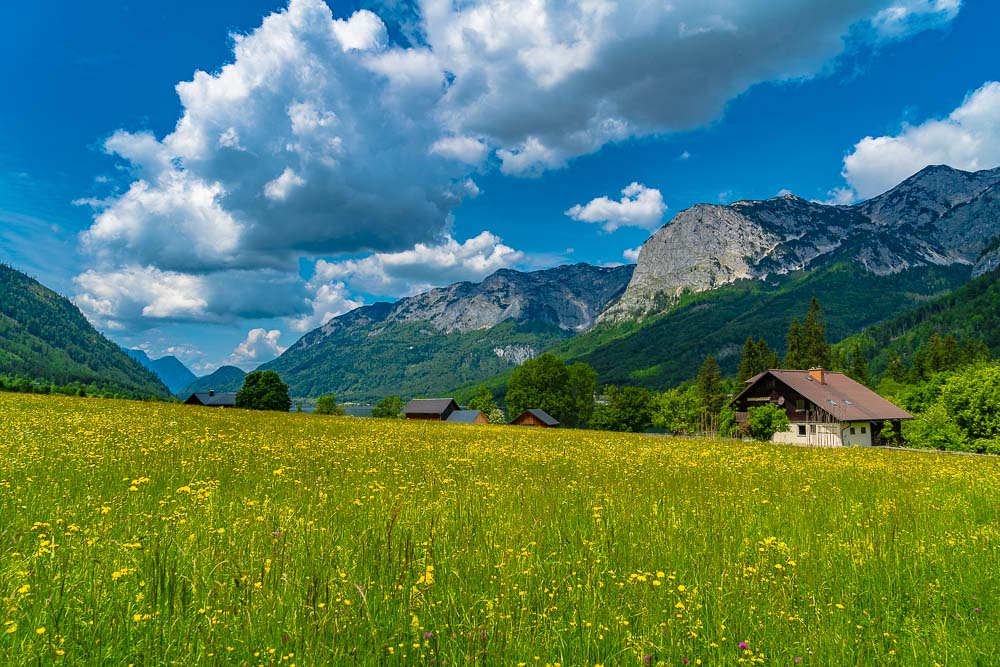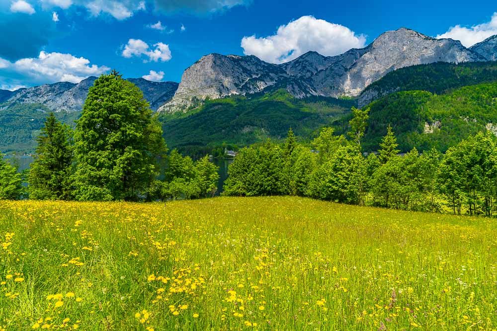 At the head of the lake, we branch off to the left after the village of Gössl to the small high plateau of the Gössl meadows.