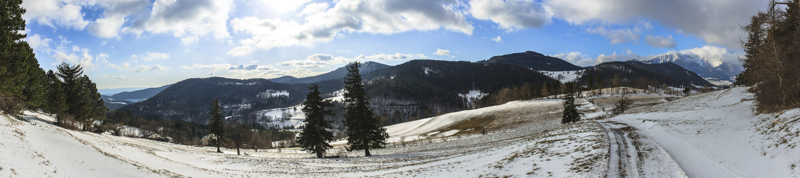 Panoramablick - Rosaliengebirge, Göseing und Gutenmanner Berge mit dem Himberg ganz rechts, dahinter der Schneeberg.