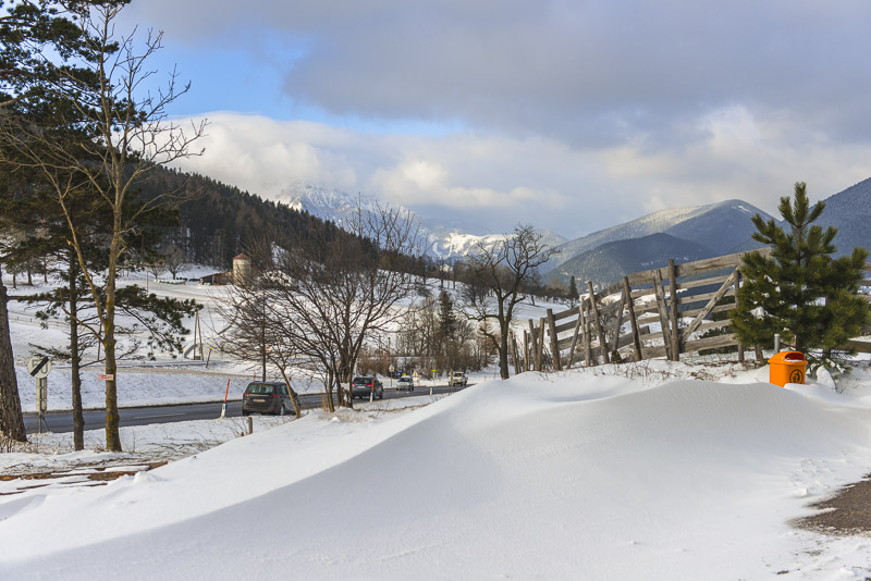 Last nigth it has snowed here, whereas Winzendorf got rain. Although there isn´t much snow, huge cornices have built up. I parked my card on a layby of the road.