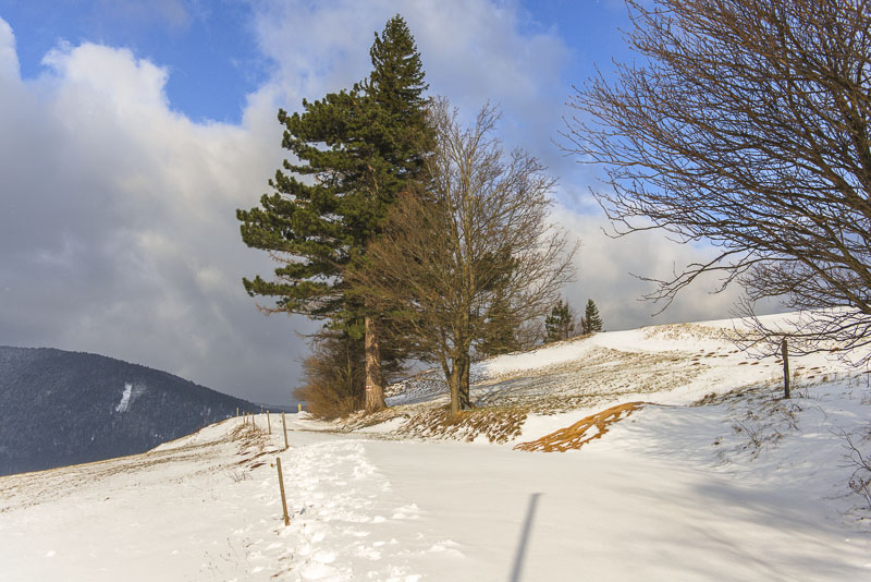 The way is full up with snow, but I prefer to walk up the grassland anyway.