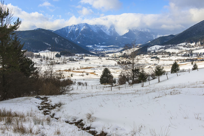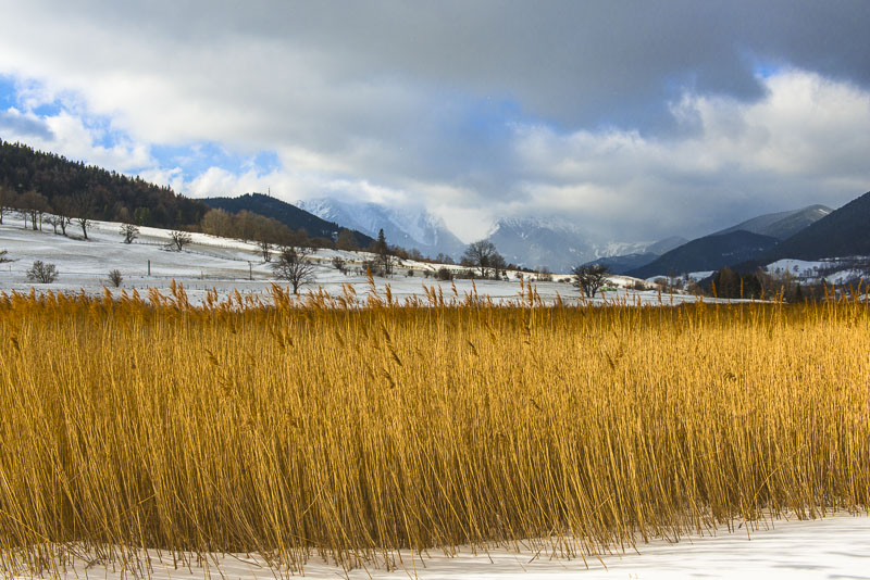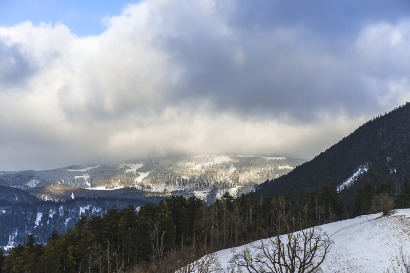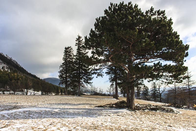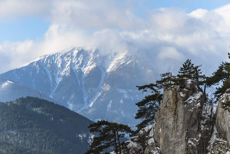 Cloudless sky in the morning. A short view to www.Schneeberg.tv tells me: lots of mist on high summits. No use driving to Puchberg. SDo, I decide to drive as far as the sun is shining, and think about the Grünbach saddle. Indeed, it is still sunny there, so there I start my short morning walk.