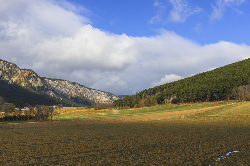 On the drive back, I have a stop at Höflein, to enjoy the view to Hohe Wand, with the slopes up to Zweiberg to the right.