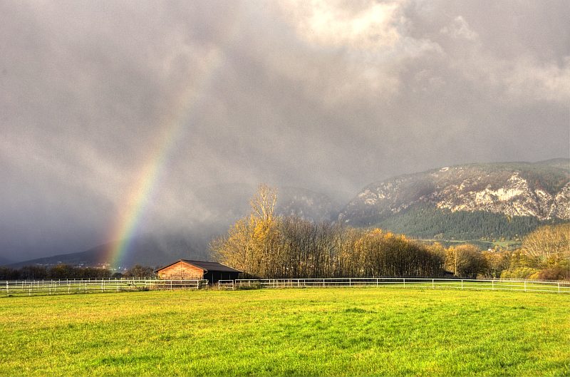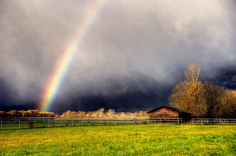 Panoramaaufnahme des Regenbogens (Mit ICE aus 5 Hochformat - HDR - Bildern zusammengesetzt)
