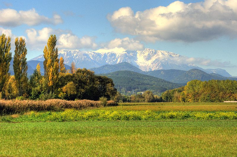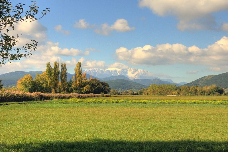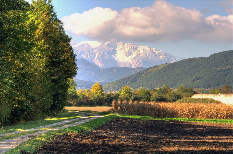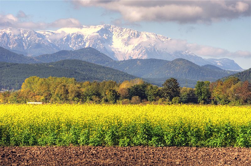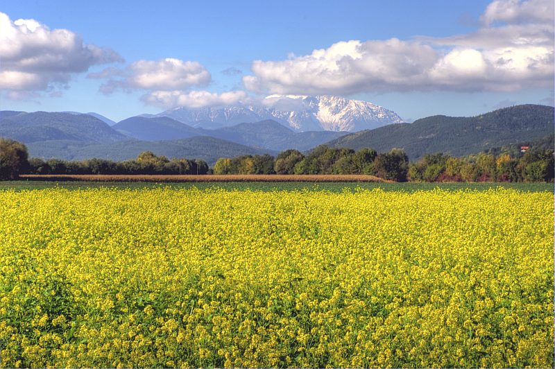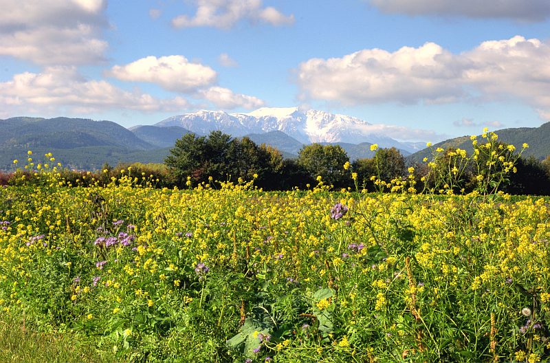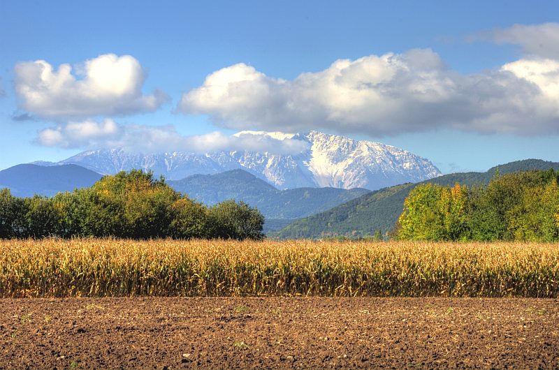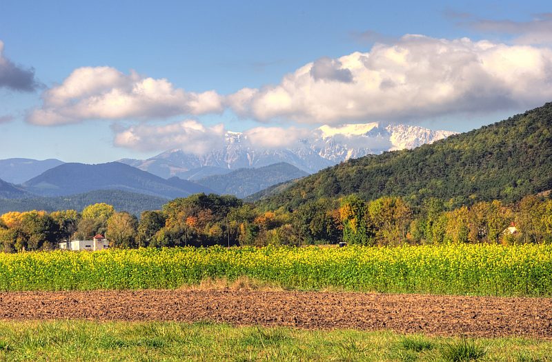 About a week ago, the temperature fell about 20 °C. A new snow cap on Schneeberg. Today, I take my camera to Oberwart and take some pictures on my bike ride home.