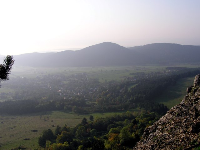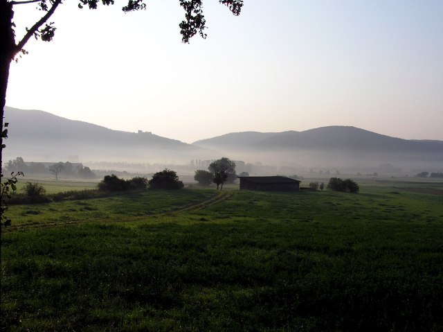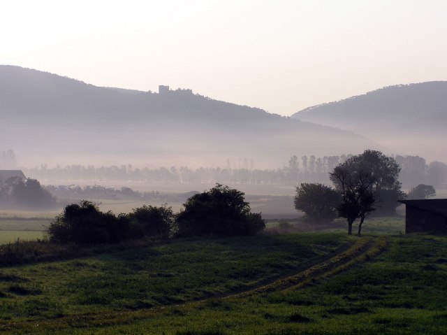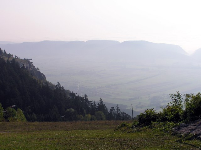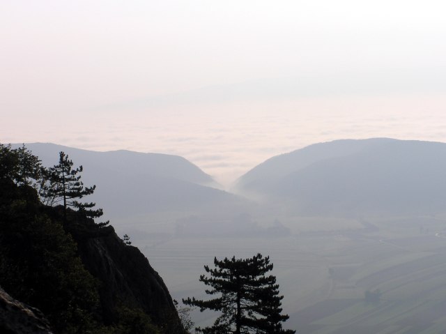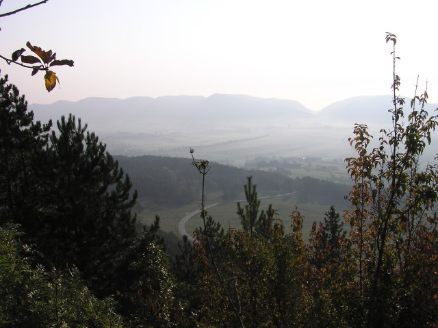 More to the left Fischauer Vorberge in morning dust with the striking indentation of Prosset gorge