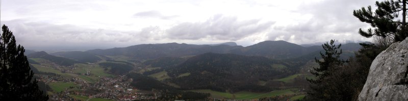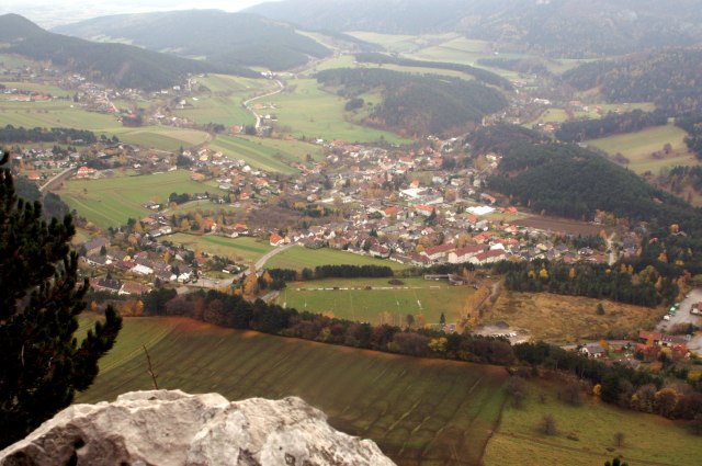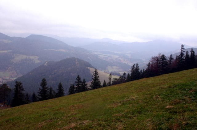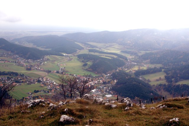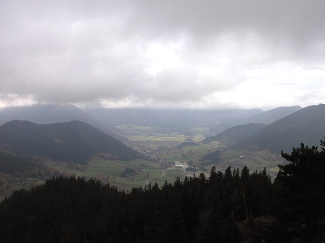 On the descent to Rastkreuz a view into Miesenbach valley (the dale behind Hohe Wand) (Foto: Manfred Reichel)