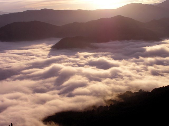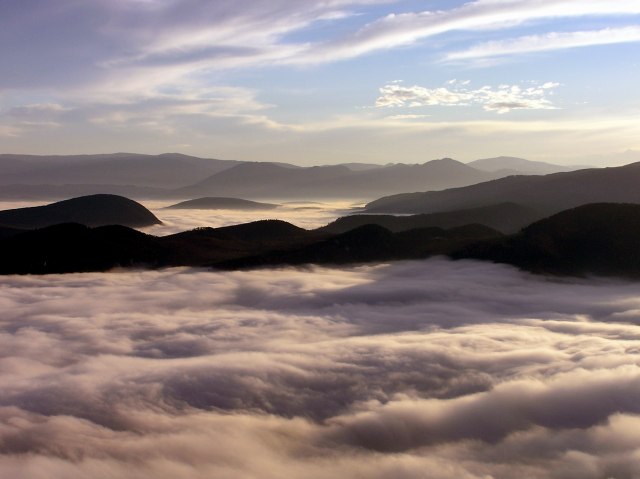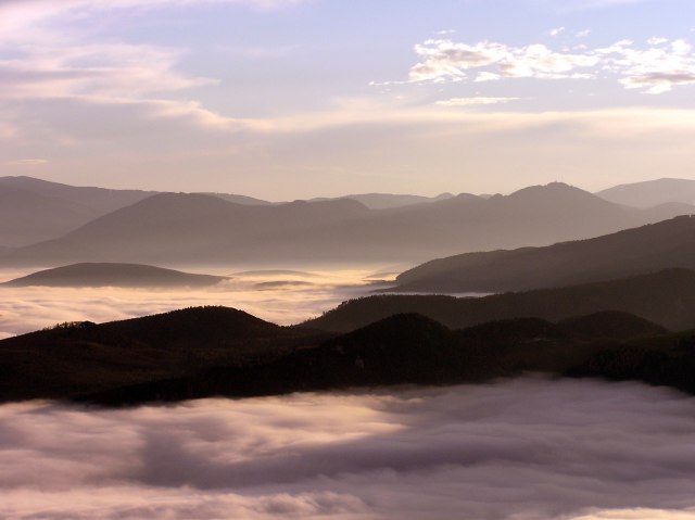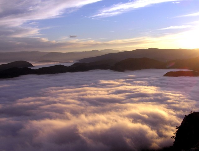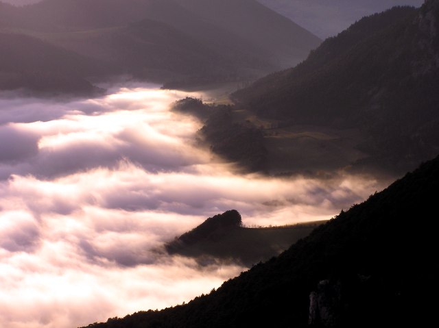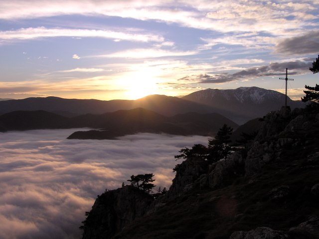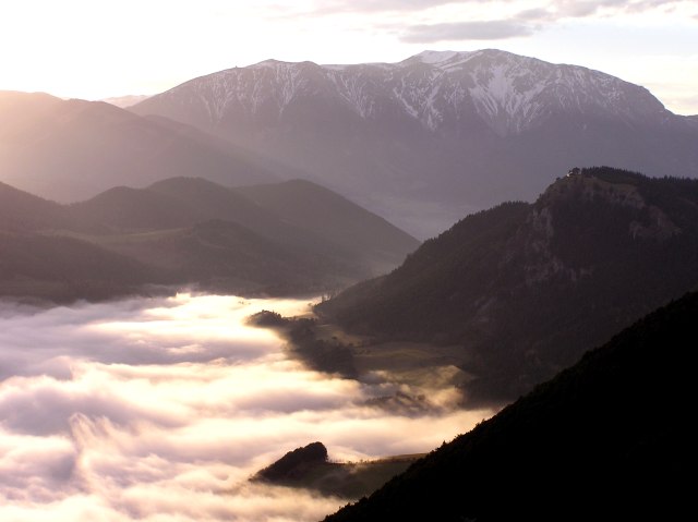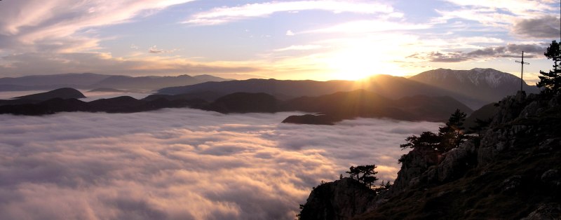 Suddenly, the view opens as we reach the southern escarpments of Hohe Wand. The cloud see is overwhelming: Schneeberg ...