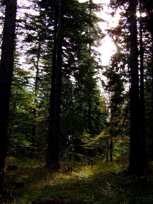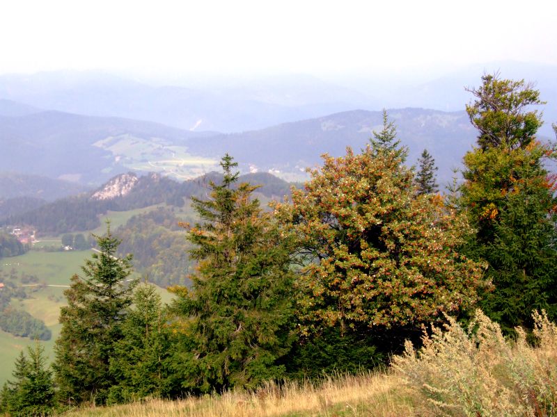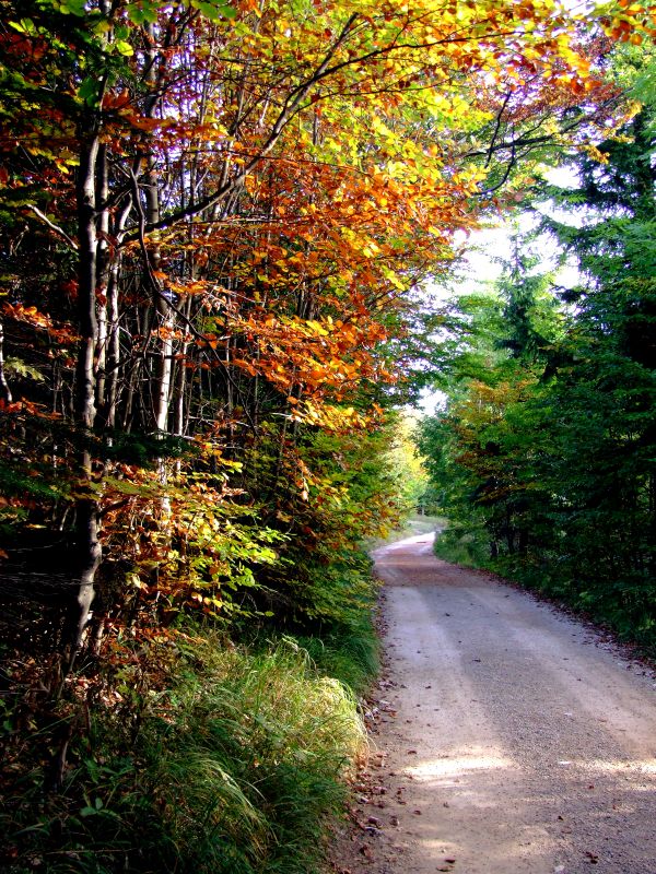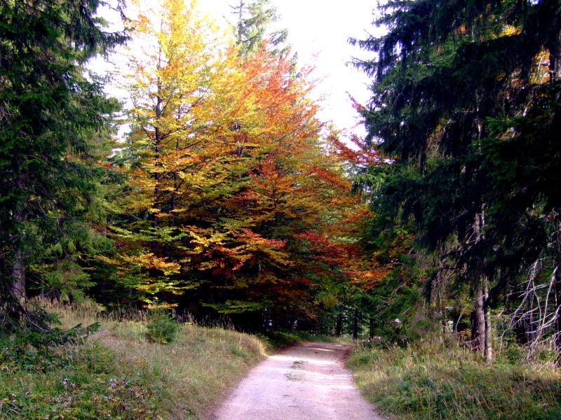 Hier heroben auf über 1.000 m Seehöhe hat es offenbar schon einmal Nachtfrost gegeben, wodurch das Laub der Buchen schon verfärbt ist.