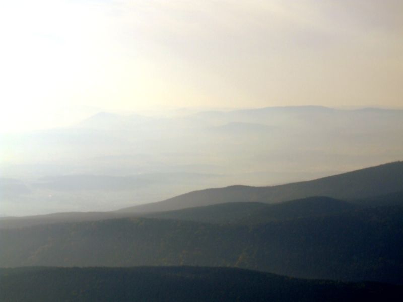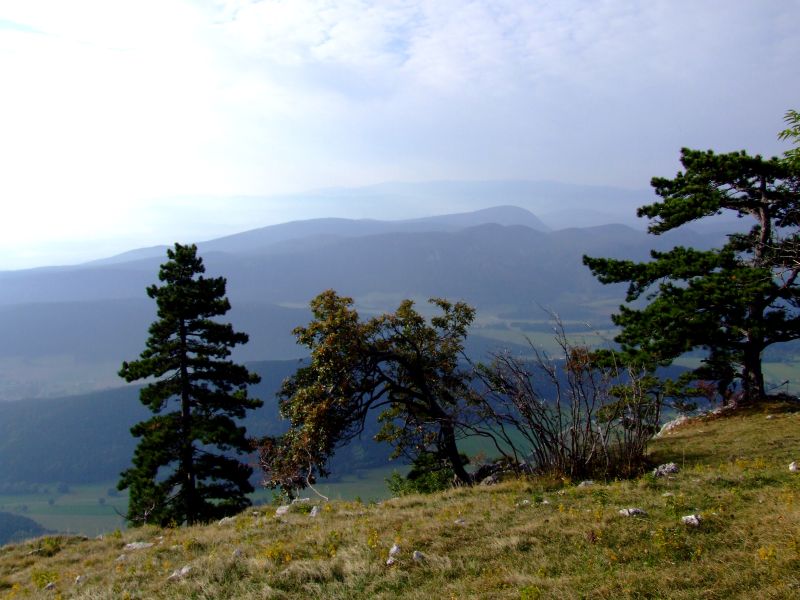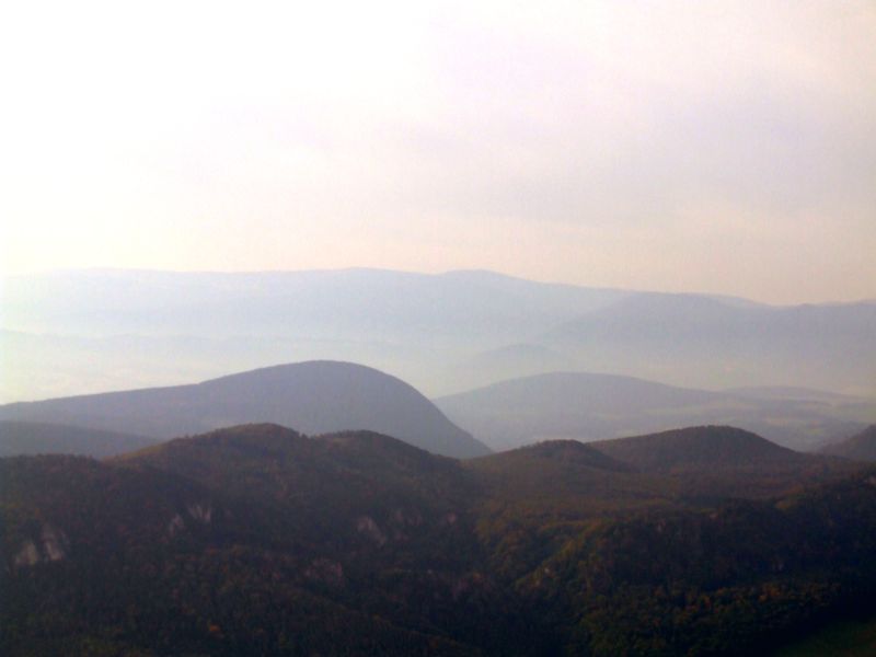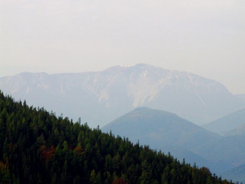 Weiter unten ist es heute recht dunstig - Blick zum Wechsel, die markante Erhebung davor ist der Gösing.