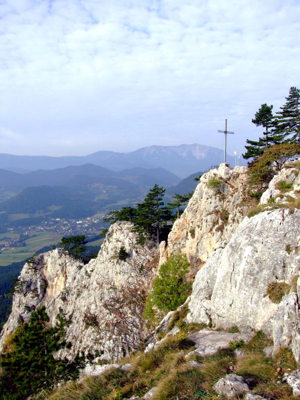Die "Große Kanzel", ein Felsausblick zum Schneeberg unweit der Eicherthütte.