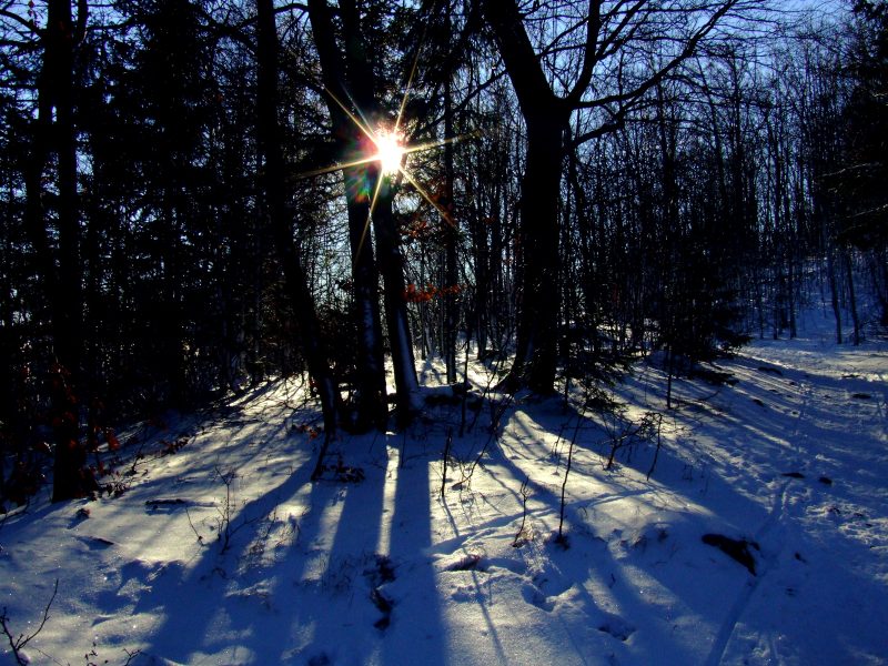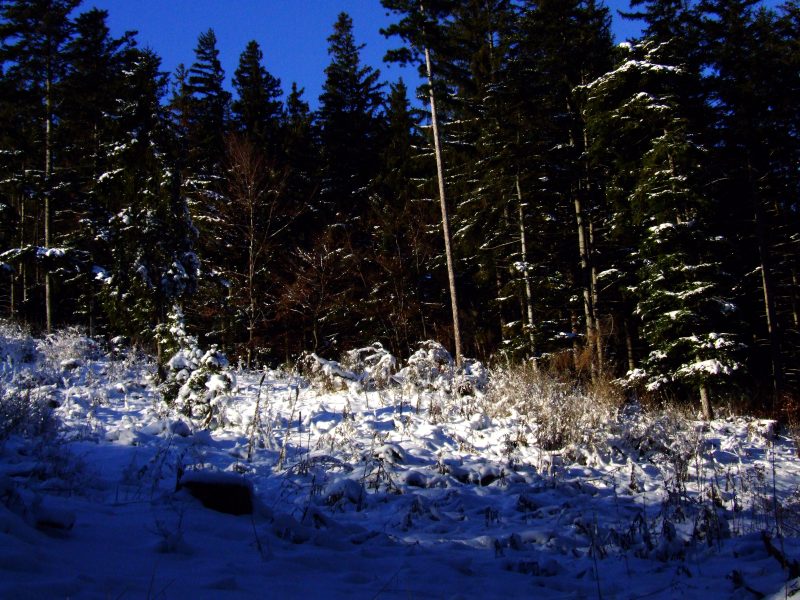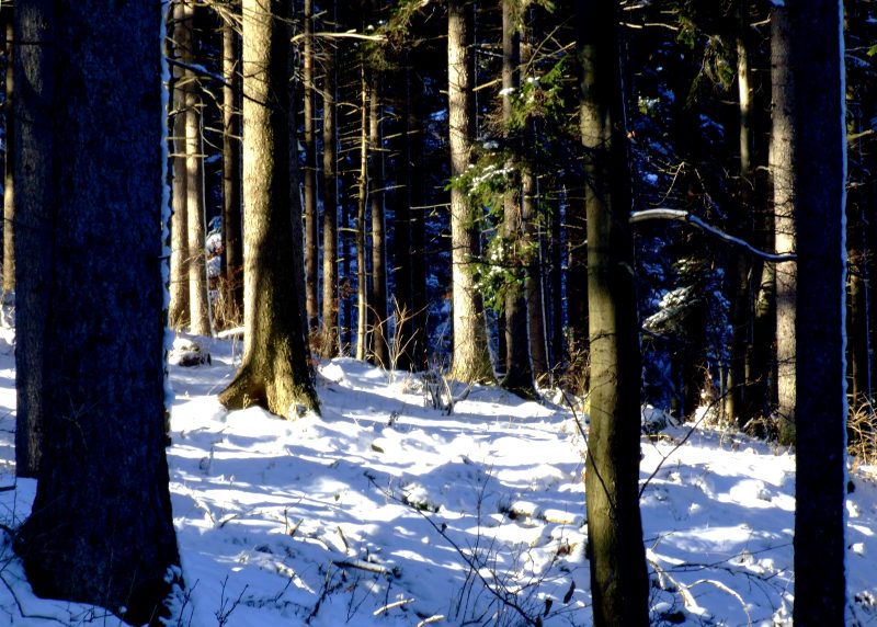 Erstes Streiflicht im Wald und auf einer Lichtung
