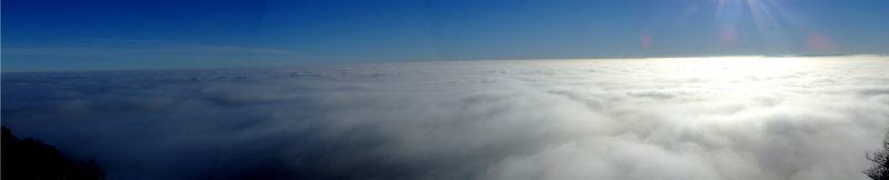 Ich wandere noch etwa einen Kilometer auf das Plateau - hier sieht man den Nebel nur mehr von der Ferne.