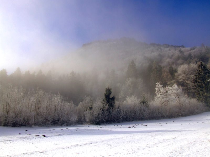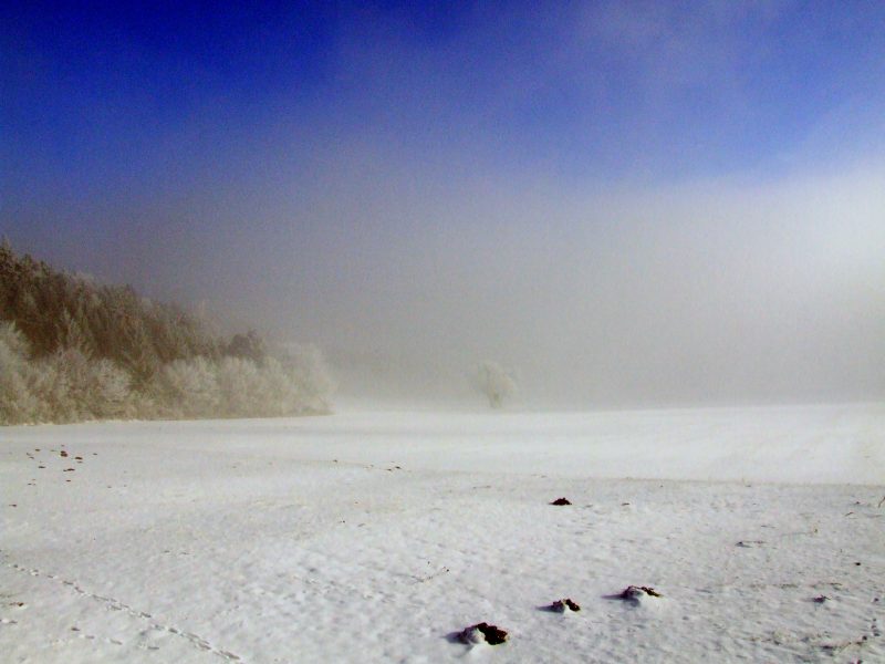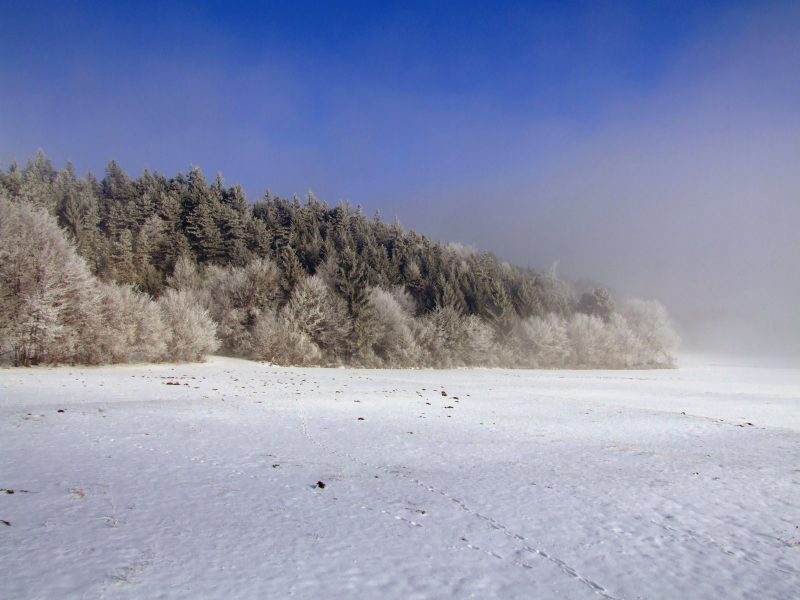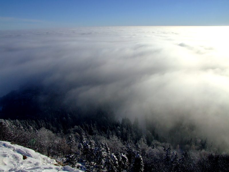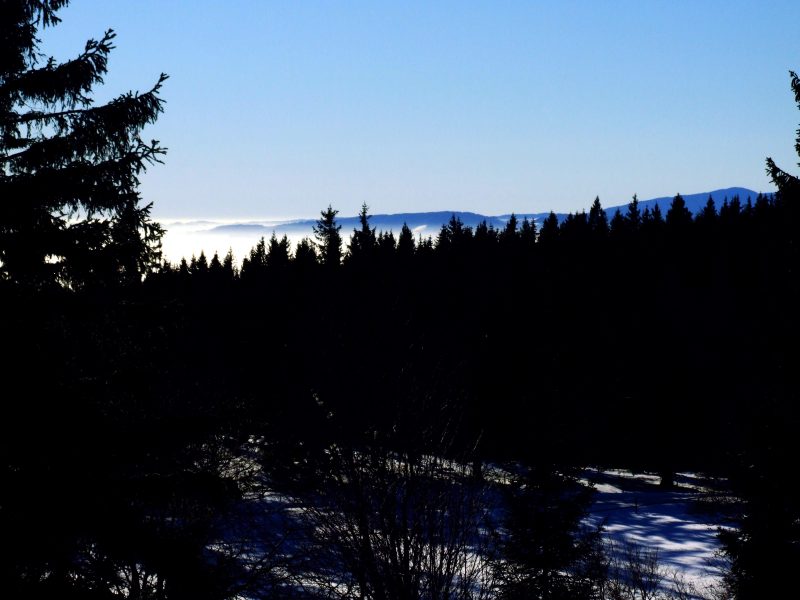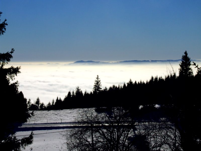 Seit fast einer Wocher herrscht nun Hochdruckwetter und klirrende Kälte in der Ebene mit einer überaus hartnäckigen, aber nicht besonders hoch reichenden Hochnebeldecke. Erst heute kann ich mich losreißen, und fahre nach Dreistetten, von wo ich zum Herrgottschnitzerhaus auf der Hohen Wand gehe, insgesamt bin ich 2 Stunden unterwegs, ca. 400 Meter Aufstieg.