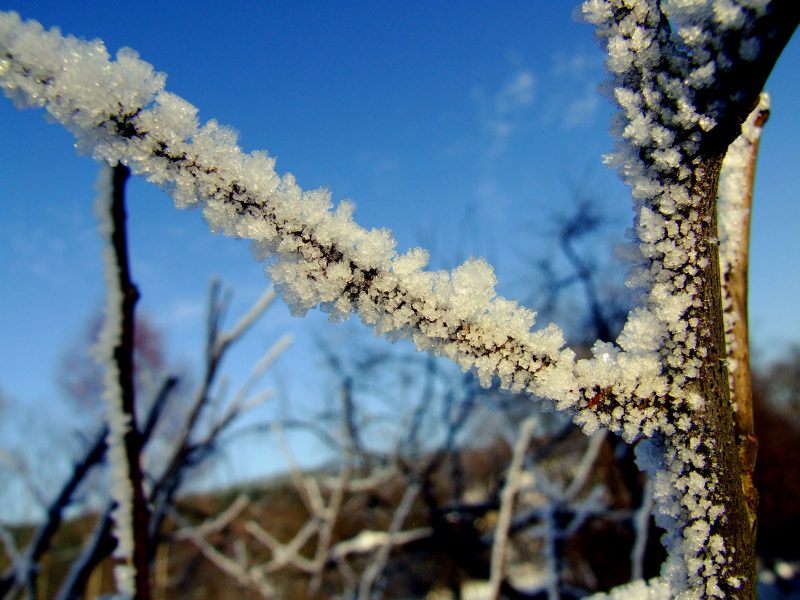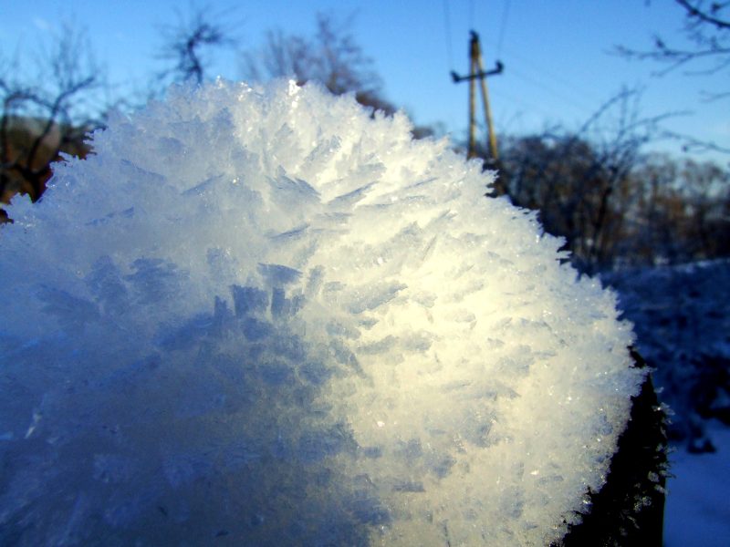 22.12.2007 - ein Besuch bei Freunden in Kirchberg. Bis hierher dringt der Nebel heute nicht vor, aber es ist doch noch kalt - etwa -5 Grad, während in St. Corona, 400 m höher und nur wenige km entfernt, +6 Grad zu verzeichnen sind. Auch diese Gegend hat aber Nebelzeiten hinter sich - Raureif auf einer Schneehaube am Gartenzaun, ...