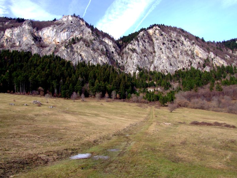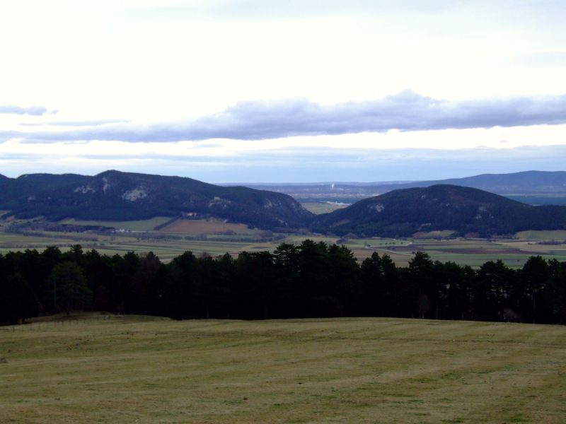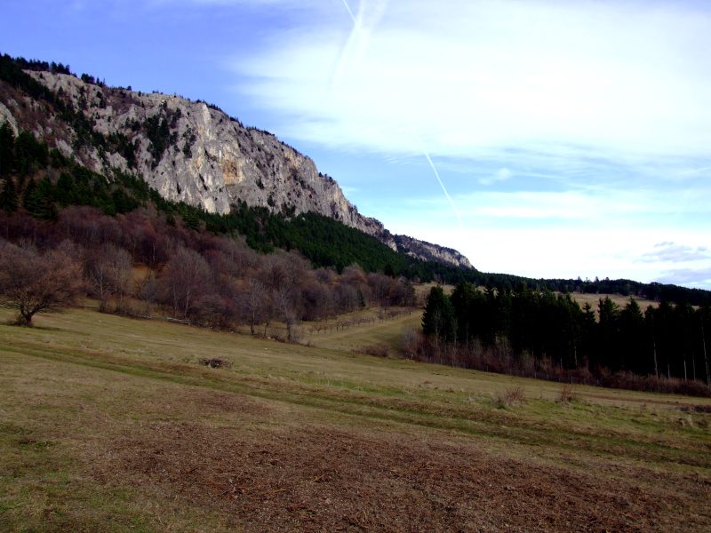 Behind Maiersdorf large grasslands up to the foot of the escarpments.