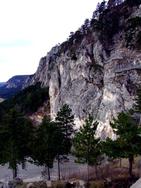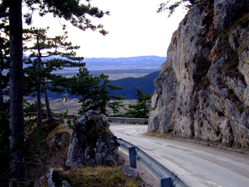 Morning walk on Hohe Wand. I start from Maiersdorf up the route called "Straßenbahnersteig" up to Hochkogelhaus. The path being rather slippery due to wet leaves, I decide to return not via one of the steep routes, but along the asphalt road, which I leave at the big curve on the foot of the escarpments.