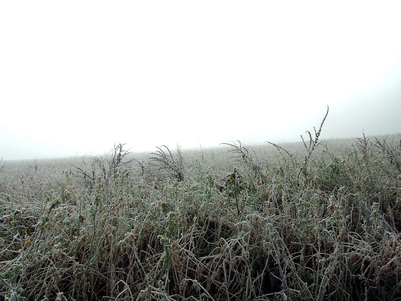 Es ist kalt geworden, und auf den Gräsern ist Raureif.