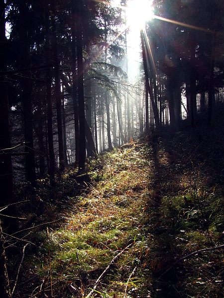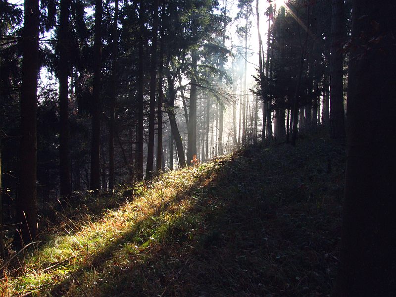 Ich wandere also durch den Wald auf die Hohe Wand. Bereits auf halber Höhe ist die Sonne erreicht, ...