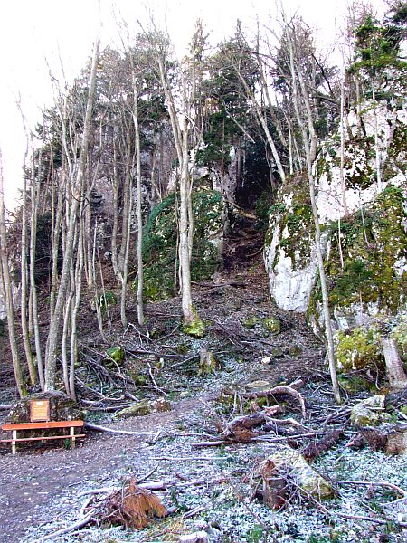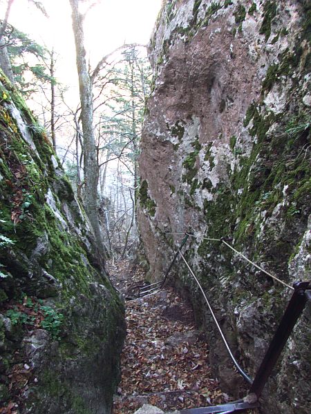 Der Drobilsteig geht jetzt durch diese enge Schlucht zwischen den Felsen ...