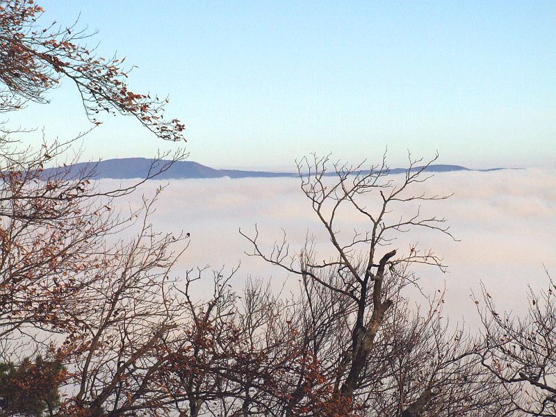 Blick nach Norden: irgendwo hier unter den Wolken am rechten Bildrand liegt in der Ferne die Stadt Wien.