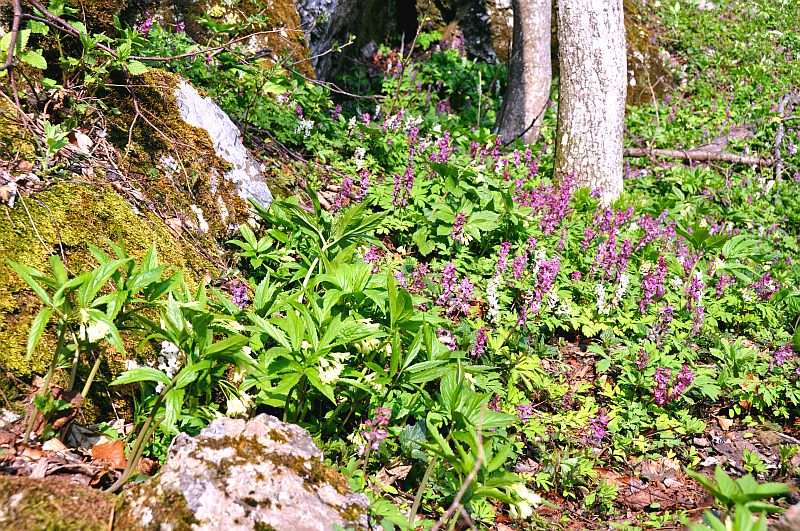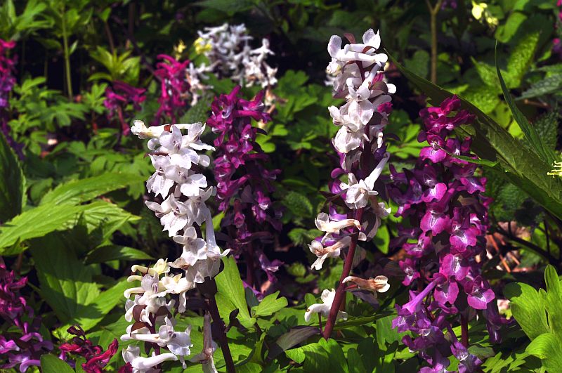 Lots of Hollow Corydale (Corydalis cava) in two colors, as everywhere.