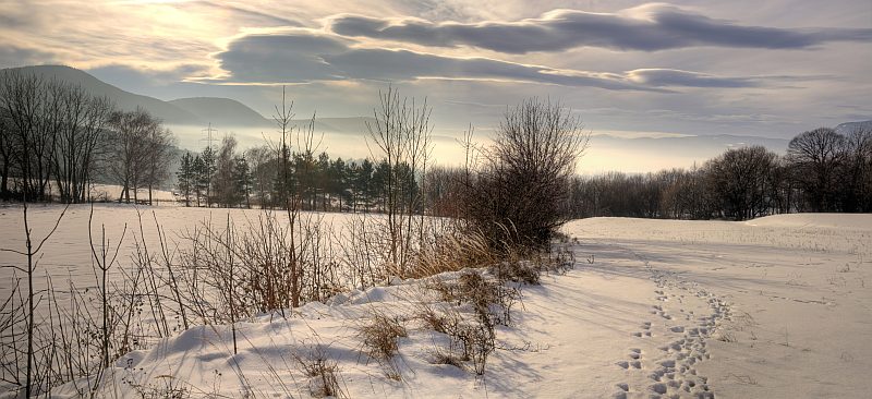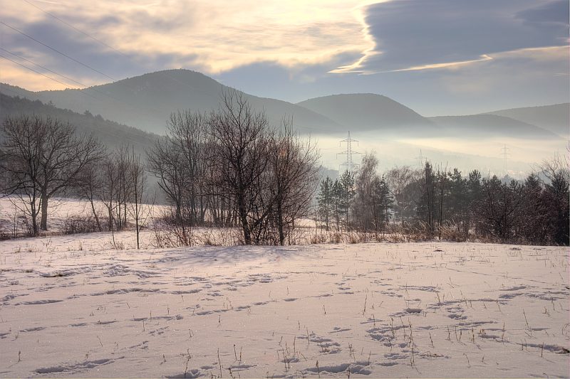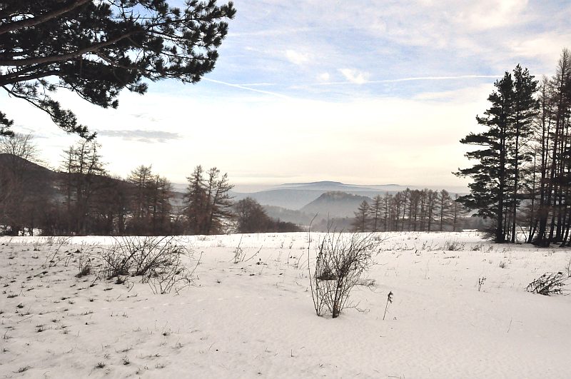 Die Fischauer Vorberge. Bis hier herauf ist es noch kalt, der Schnee pulverig.