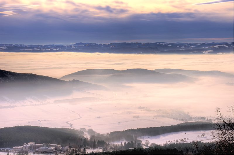 Blick Richtung Wien. Auch hier eine dichte Bodennebeldecke.