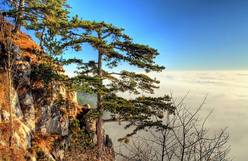 Seit bald 2 Wochen herrscht ruhiges Hochdruckwetter über weiten Teilen Europas (ein sogenanntes "Omega - Hoch"). Um diese Jahreszeit bedeutet das: Nebel über Winzendorf, Sonne auf den Bergen. Heute kann ich mir endlich den Vormittag frei halten und fahre auf die Hohe Wand.
