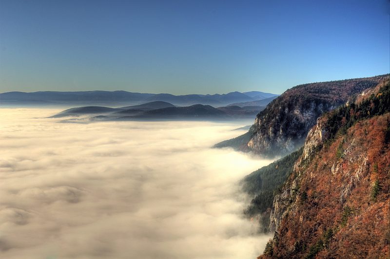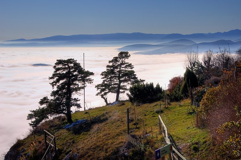 Ein Stück die Wandstraße hinauf, und der Blick geht über das Nebelmeer: zum Semmering/Wechsel ...