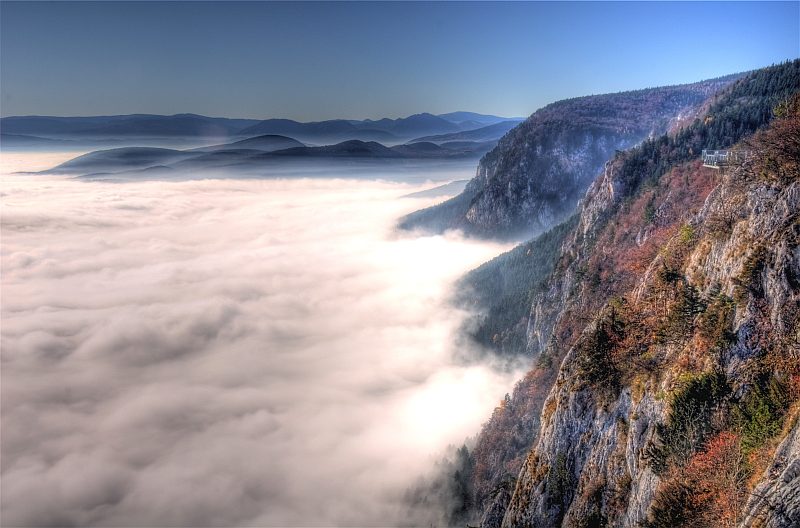 Mein nächstes Ziel ist der Skywalk, von dem man einen atemberaubenden Tiefblick auf das Nebelmeer hat. Hierher oder aufs Bild klicken für eine größere Darstellung.