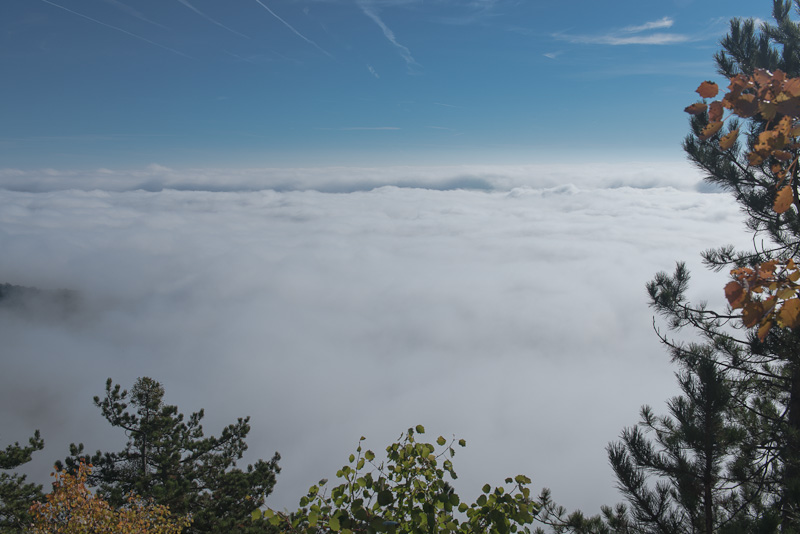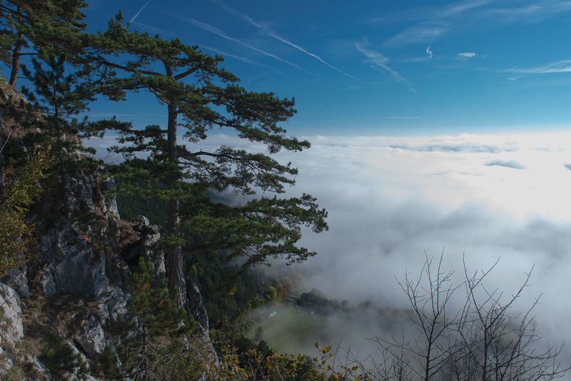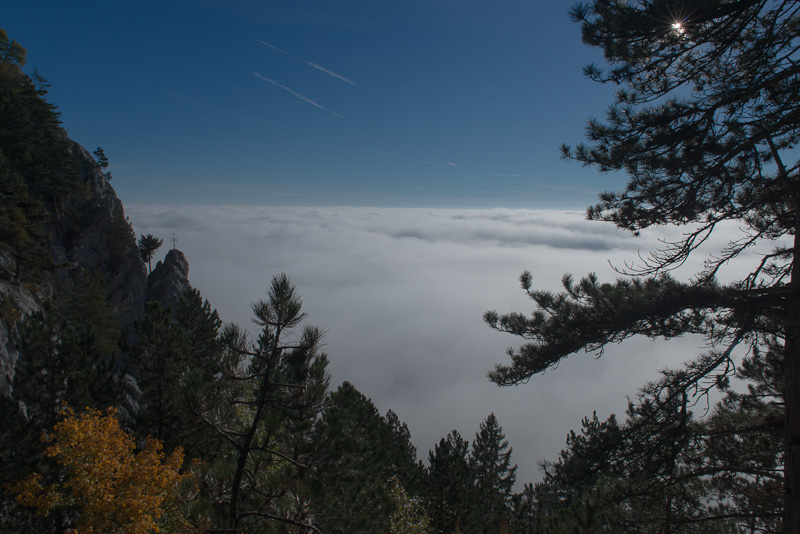 Yesterday in the evening, mist was drawing in, and has settled in (also the whole week to come, btw). Above the mist it is bright, so I drive up to Hohe Wand.