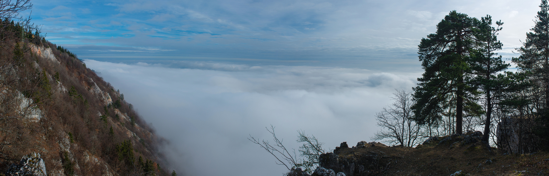 Diese Stelle nahe beim Hochkogelhaus heißt "Neue Welt Blick", weil man von hier gut ins Tal der "Neuen Welt" schauen kann - wenn nicht grad der Nebel dies verhindert.