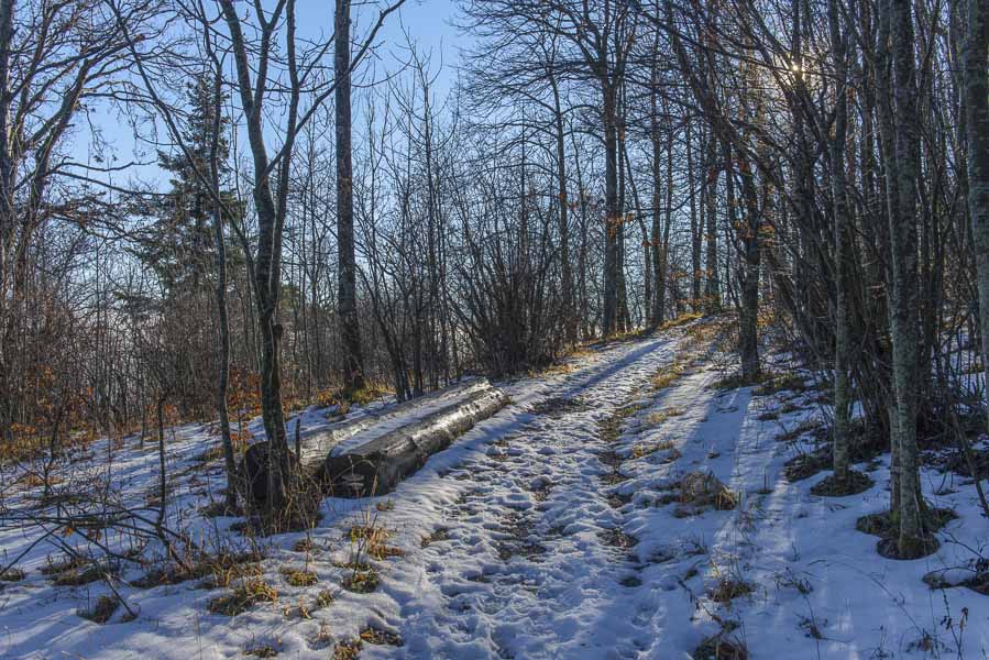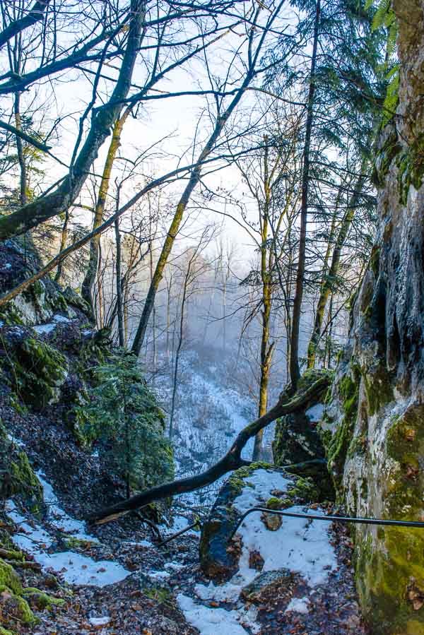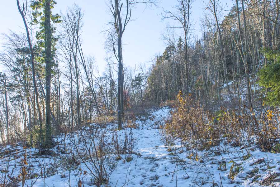... durch den Wald, diesmal auf dem "Normalweg". Über Leitern bergab gehen ist nicht so angenehm, mit oder ohne Spikes. Und auch im feuchten Laub des Waldes sind die Spikes eine nicht zu unterschätzende Hilfe beim Abstieg.