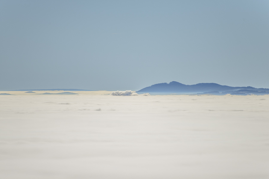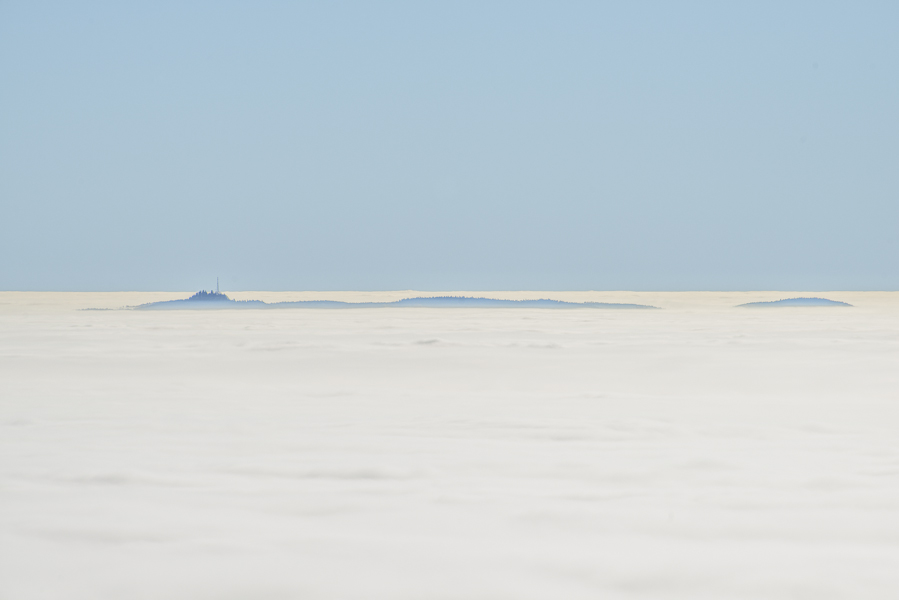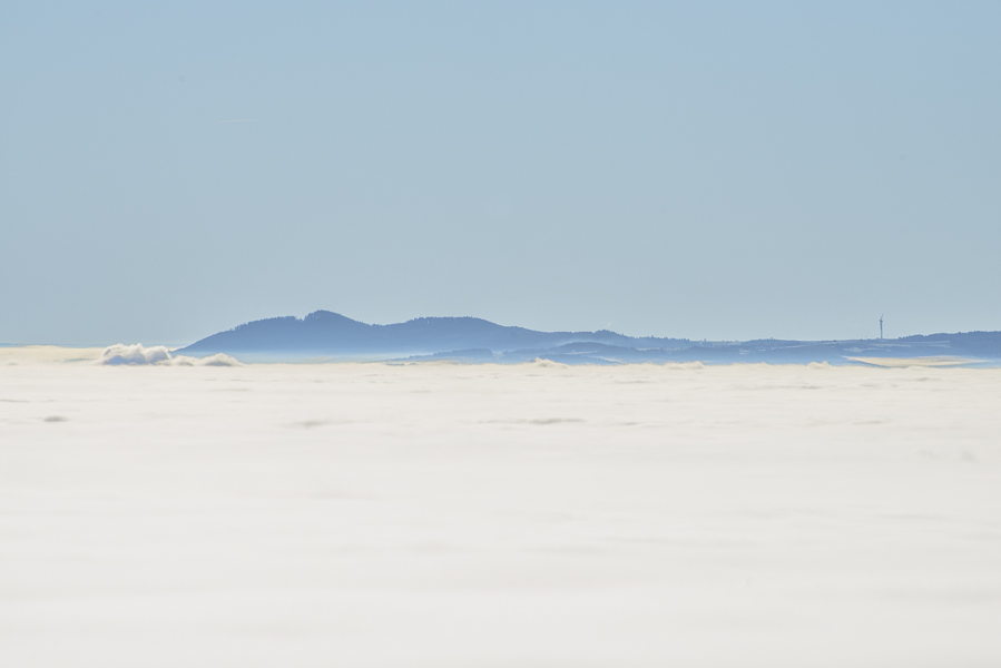 Der Sender und die Kapelle auf der Rosalia sind gerade noch aus dem Nebel heraußen.